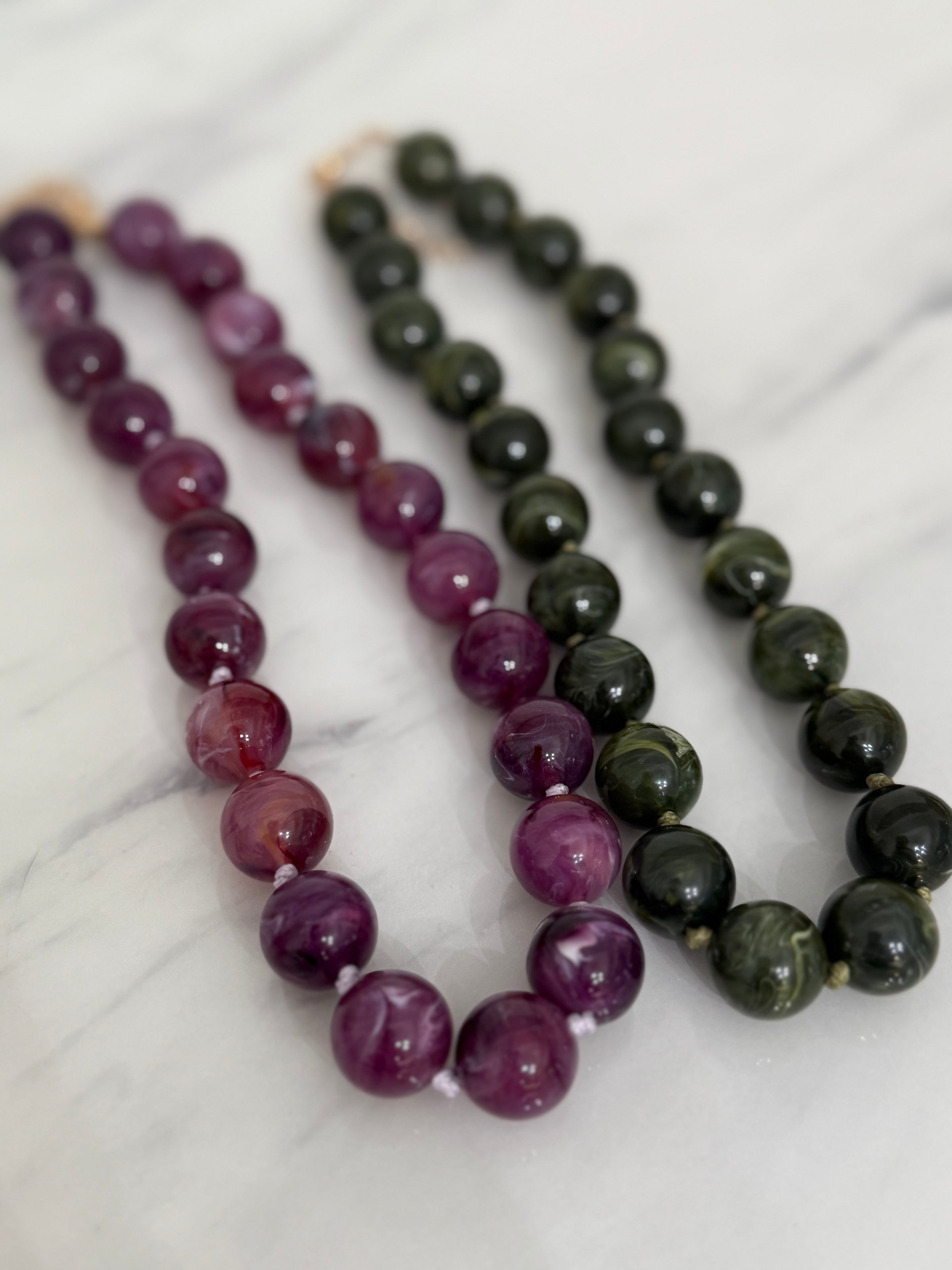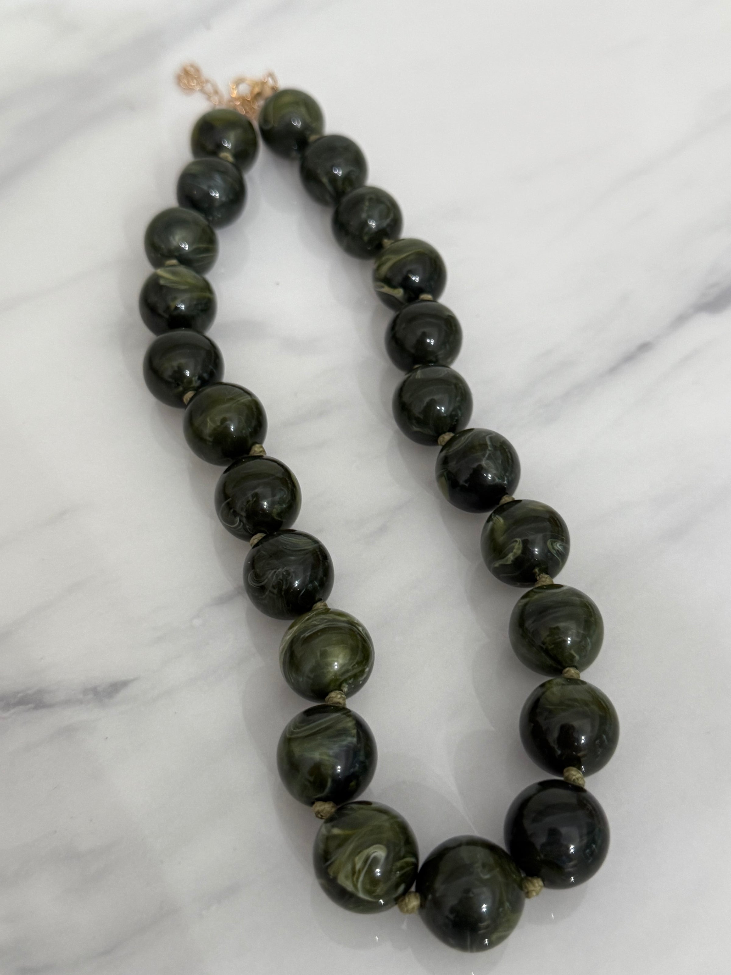 A beautiful chunky fall necklace- large round swirled resin beads, hand knotted in a variety of Fall colors. Perfect on their own or stacked with others!