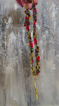A holiday twist on the classic star pendant necklace- a chunky gold chain necklace with a large star charm and frayed tartan red/green plaid ribbon for a perfect Ralph Lauren inspired holiday necklace.